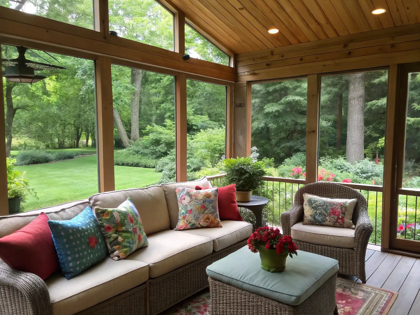 The Smith Family’s charming screen porch blends seamlessly with their home, providing a cozy space to relax and enjoy the outdoors.